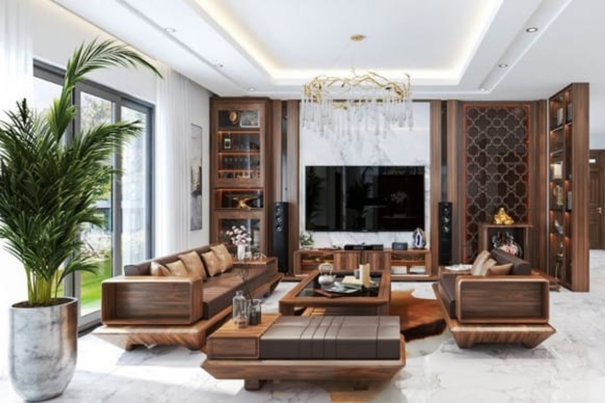 Gợi ý một số mẫu nội thất phòng khách gỗ óc chó sang trọng