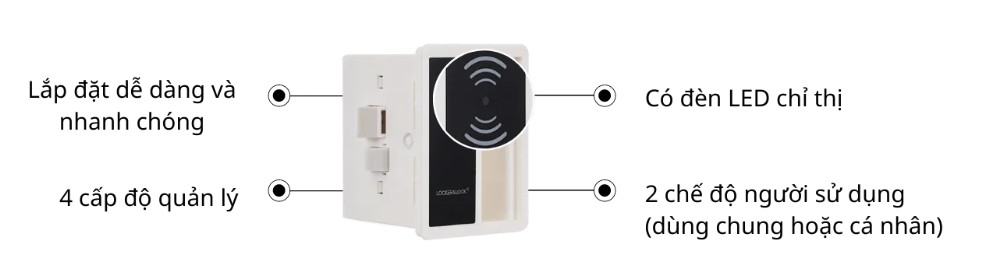 - Khóa điện tử RF3000C: dòng khóa ứng dụng cho tủ Locker, sử dụng cảm biến chip RFID tích hợp qua thẻ và vòng đeo tay.